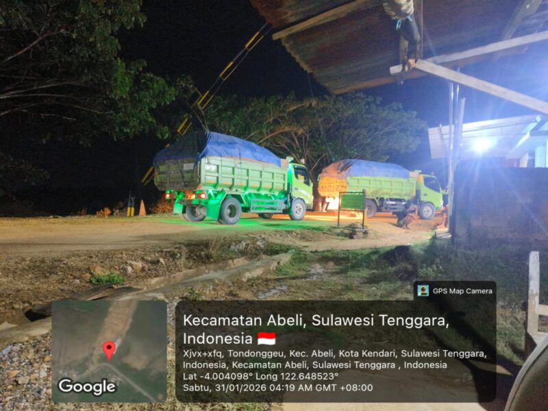 Terkini.id, Kendari – Truk enam roda yang memuat ore nikel dari PT ST Nickel Resource yang beraktivitas di Kecamatan Amonggedo, Kabupaten Konawe dan membawa muatannya ke jetty PT Tiara Abadi Sentosa yang terletak di Kelurahan Tondonggeu, Kecamatan Abeli, Kota Kendari leluasa menggunakan empat ruas jalan dini hari, Sabtu 31 Januari 2026.